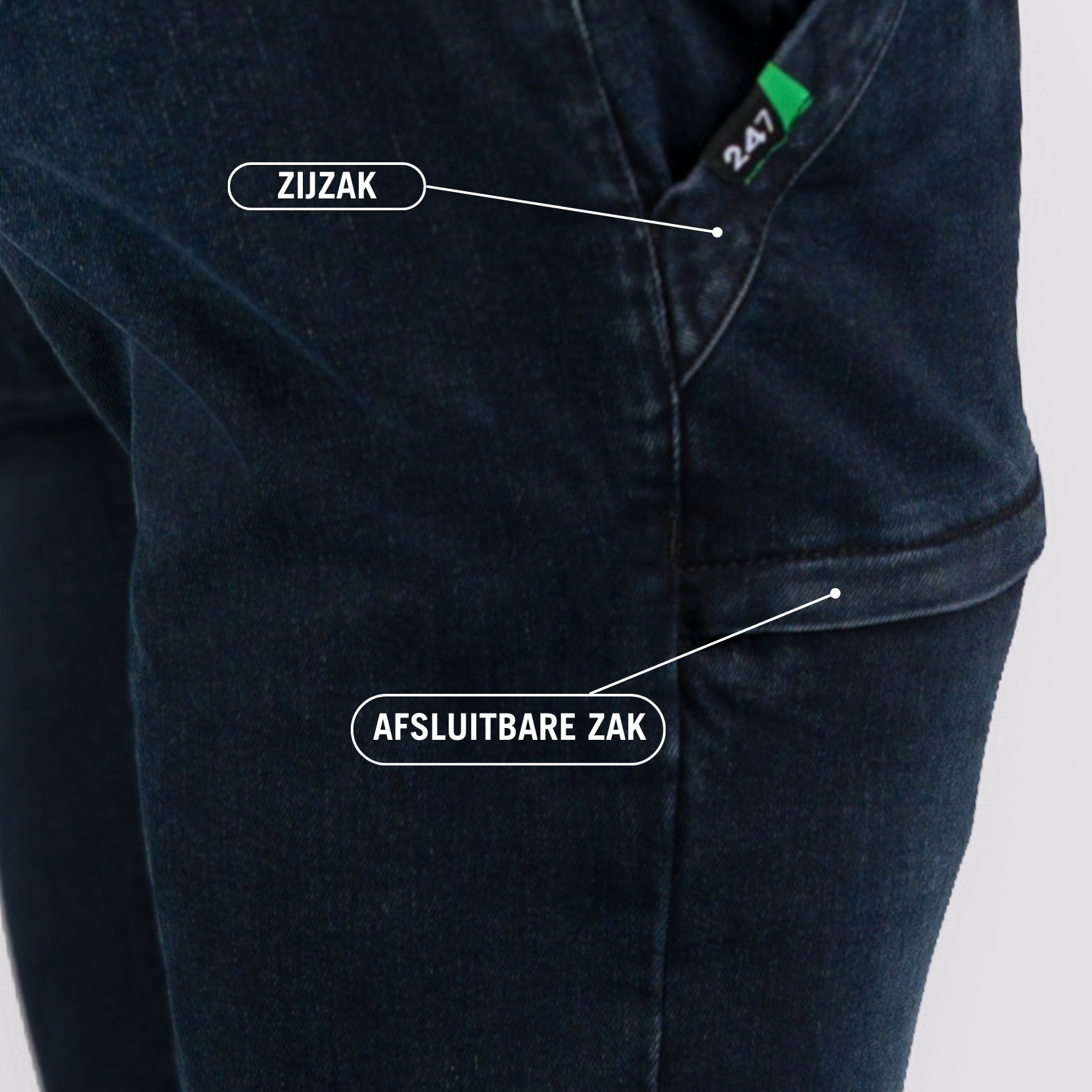 De 247Jeans Cheetah Workwear W06 is een jeans met twee gezichten. De mooie details en het hoge niveau van afwerking zorgen voor een jeans die je dagelijks aan kan trekken voor een stoere, casual look. De inpandige zakken maken het echter ook een goede werkbroek. Zonder met zichtbare zijzakken te lopen, biedt de 247Jeans Cheetah volop opbergruimte voor kleine gereedschappen. Functionaliteit én uitstraling en niet te vergeten comfort, want de comfortabele stretch denim zorgt voor naadloze aansluiting op jouw benen.- Fit: Slim fit