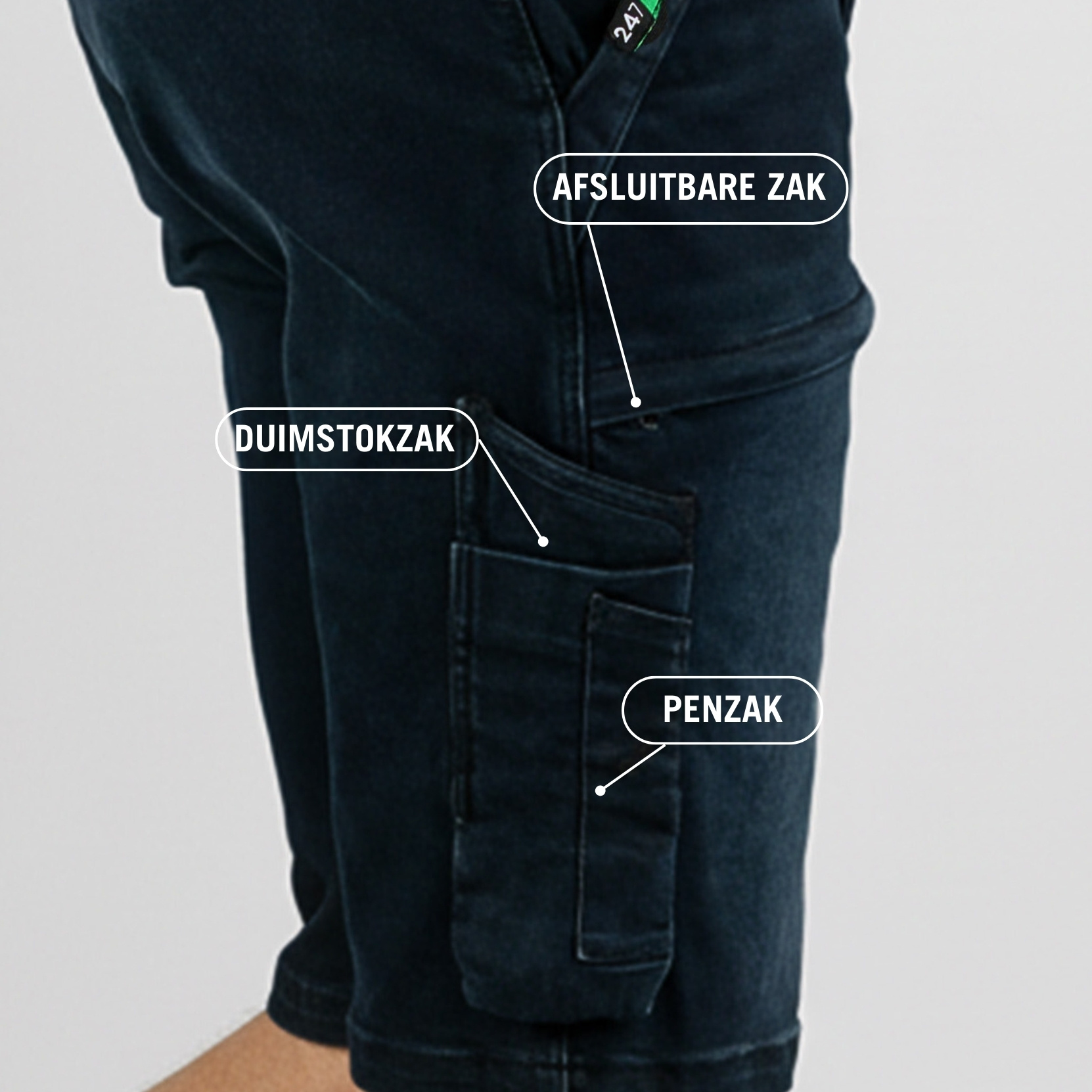 Voor de warme dagen is het heerlijk om een korte jeans aan te trekken die wél alle gemakken van een goede werkjeans in zich heeft. De 247Jeans Jaguar korte broek mag daarom niet ontbreken in jouw garderobe. Gereedschap en apparatuur heb je altijd bij de hand door de ruime zakken op deze korte werkbroek. Tegelijk biedt de stretch denim stof jou het comfort en de vrijheid om volop in beweging te zijn. Kortom: een stoere jeans voor de harde werkers in de zomer.- Fit: Slim fit